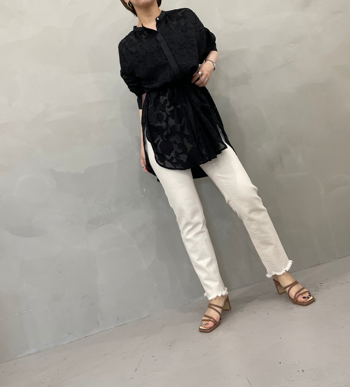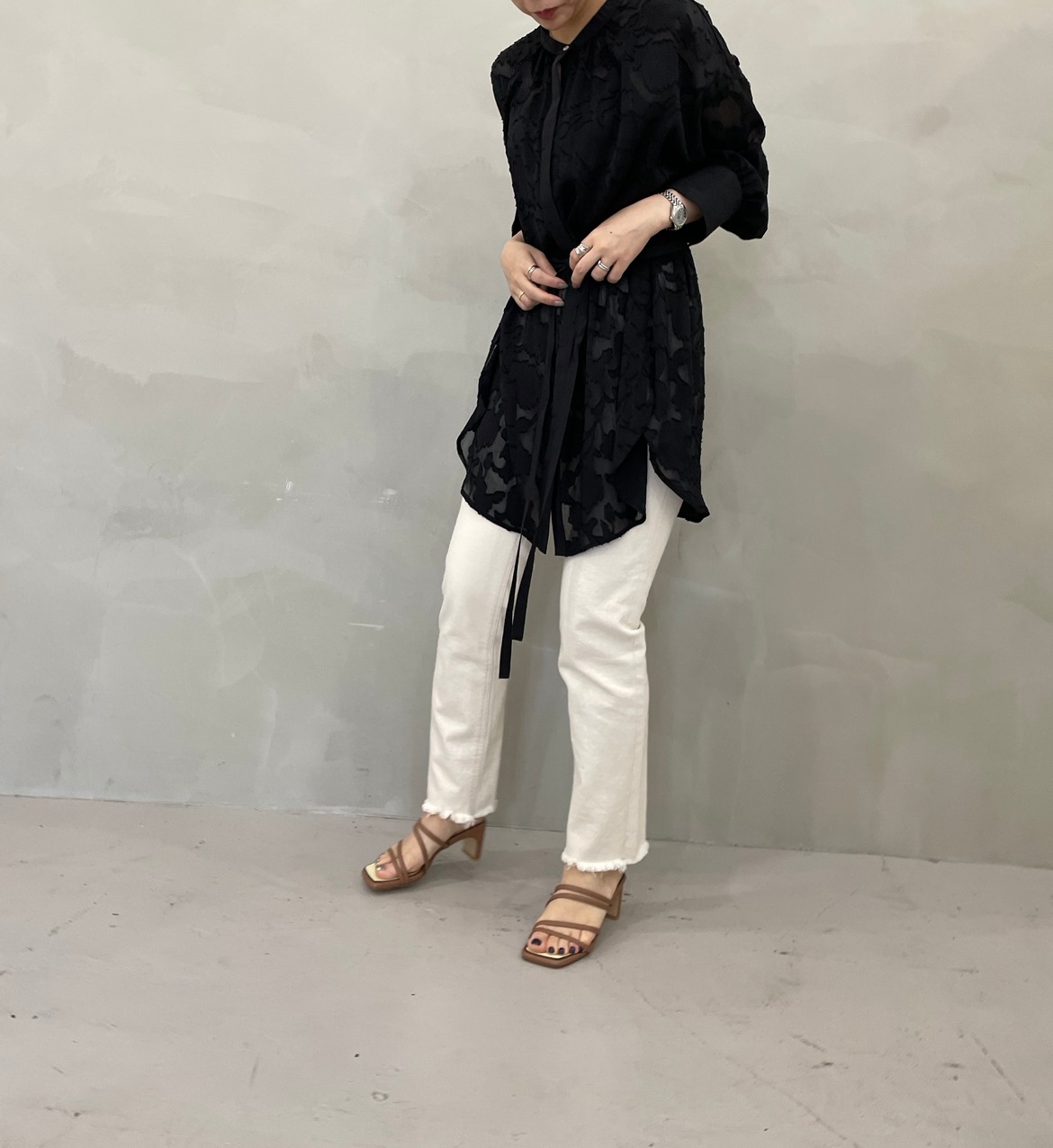 透け感のあるジャガード柄とバックスタイルのデザインがとても可愛いこちらのシャツ🤍